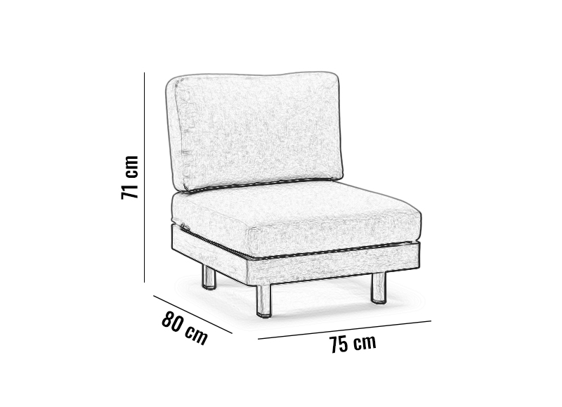 Element środkowy - 75 cm x 80 cm x 71 cm (wysokość siedziska 40cm)