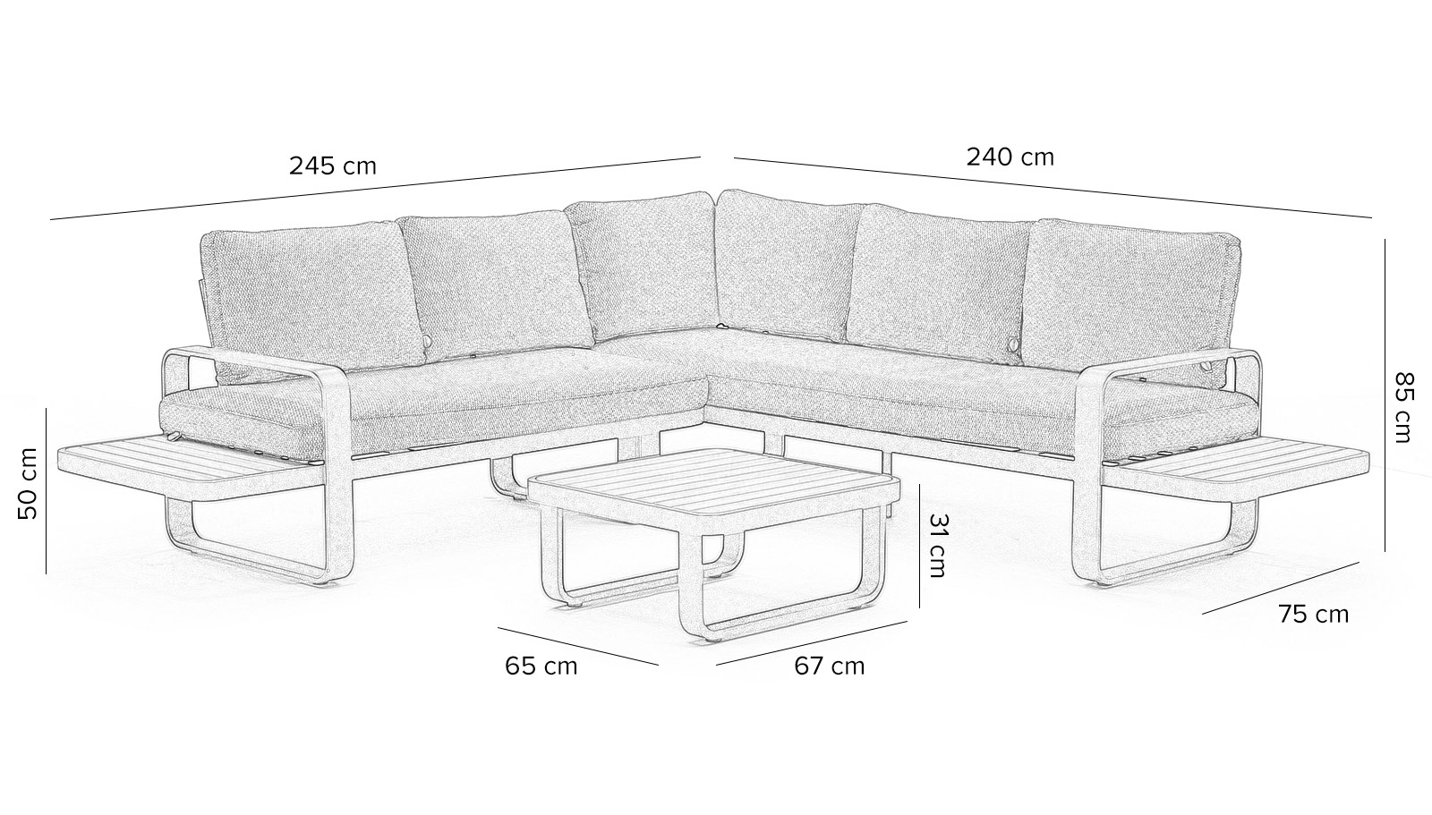 DOXA to zestaw mebli outdoorowych zaprojektowany do tworzenia funkcjonalnej i spójnej strefy relaksu w przestrzeniach zewnętrznych. Komplet obejmuje sofę trzyosobową, sofę dwuosobową oraz stolik kawowy, umożliwiając wygodne użytkowanie zarówno w układzie towarzyskim, jak i codziennym wypoczynku.